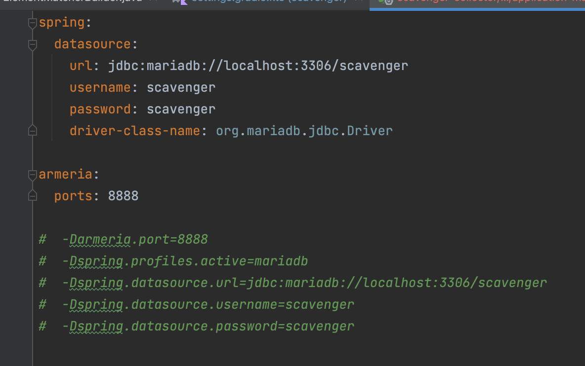 기본적으로 Scavenger에서 제공되는 데이터베이스 환경은 H2와 MySQL인데, 라이센스 문제도 있기 때문에, MariaDB를 사용하였다.