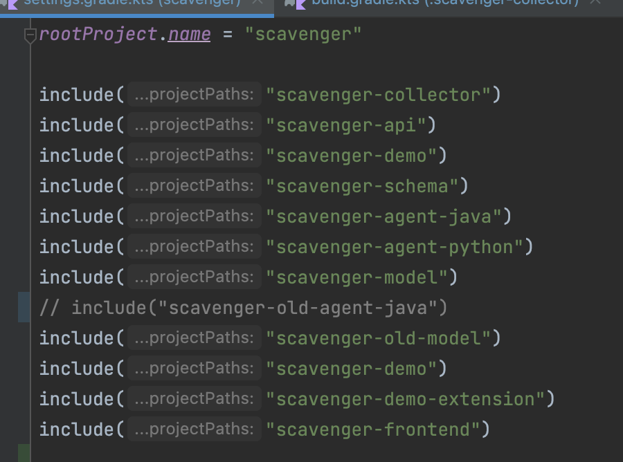 내가 진행해본 바로는 그냥 최상위 settings.gradle.kts 에서 gradle reload 해주면 되는데, 그냥 하게 되면, scavenger-old-agent-java 부분에서 에러를 만날 수 있다. 프로젝트에 최소 Java 11을 사용하도록 설정했는데, old-agent 는 그것보다 낮은 버전을 쓰고 있었기 때문에, 해당하는 부분을 주석처리후에 reload 해주어야 한다.